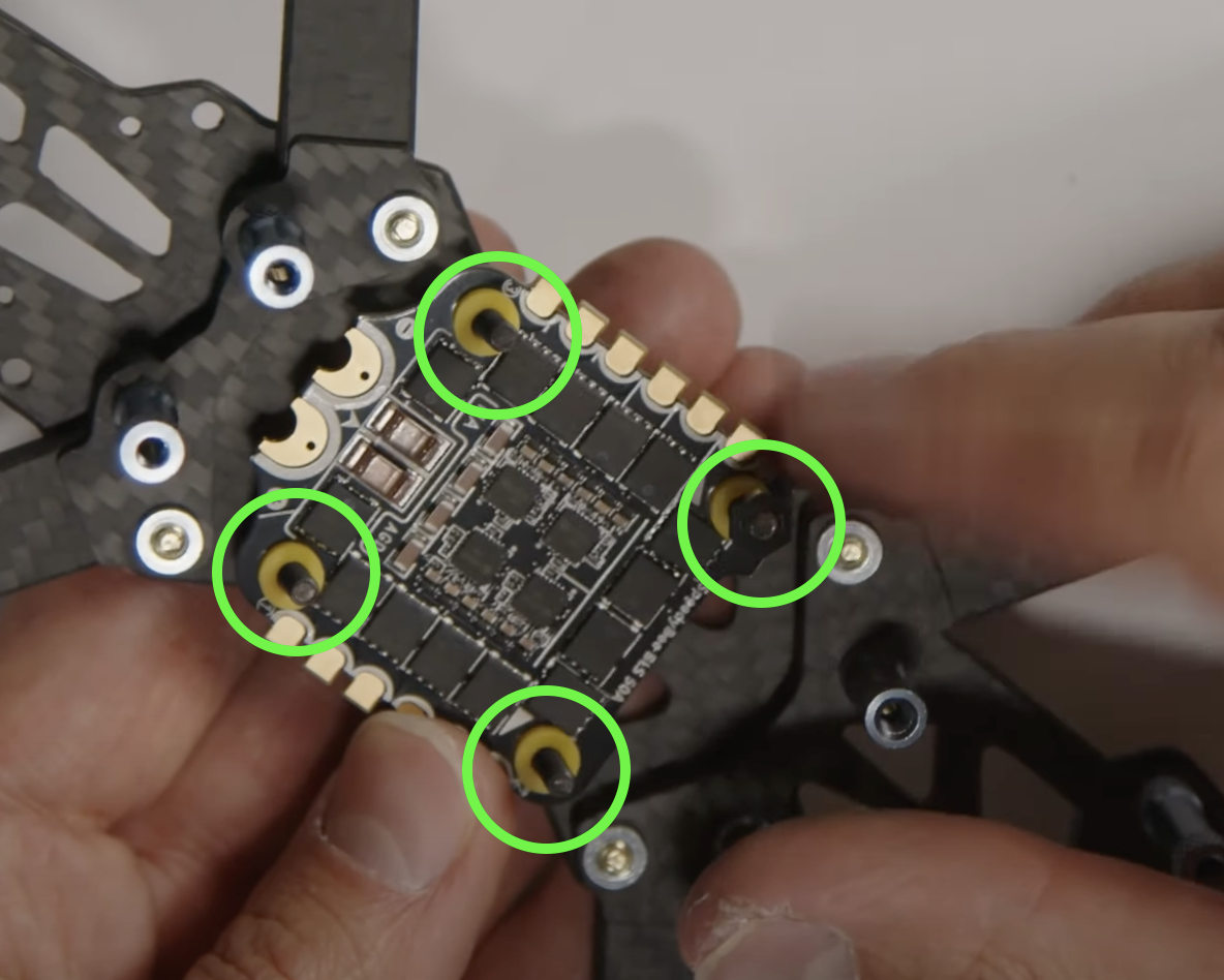 …і тимчасово прикріплюємо гайками на двох протилежних гвинтах (для того щоб ESC не з'їхав коли будете паяти).